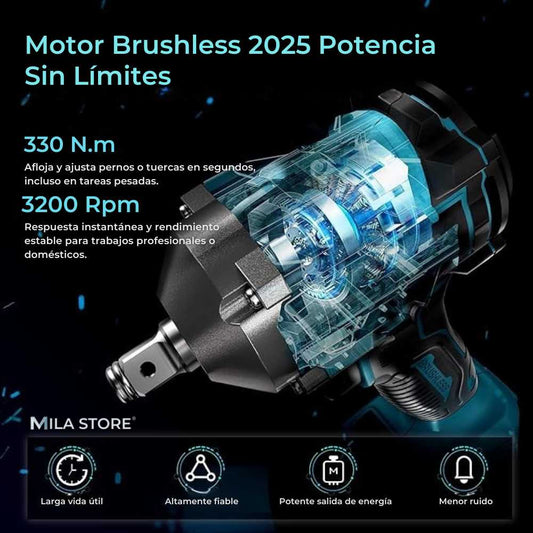 Llave de Impacto Profesional 128V - Tasbel™ + Kit de Herramientas y 2 Baterias