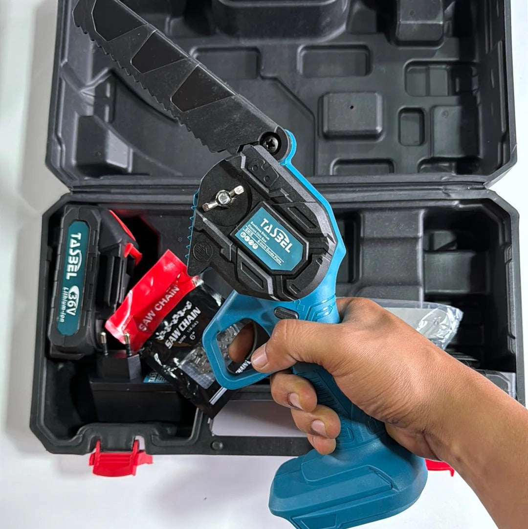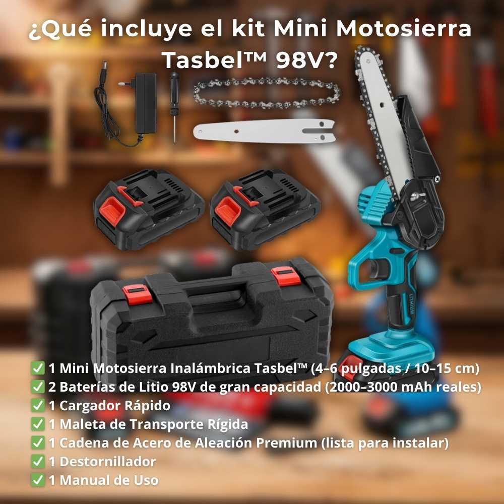 La Tasbel™ Mini Saw 98V corta todo con una mano, sin esfuerzo, sin bencina y sin complicarte. ⚡🌲