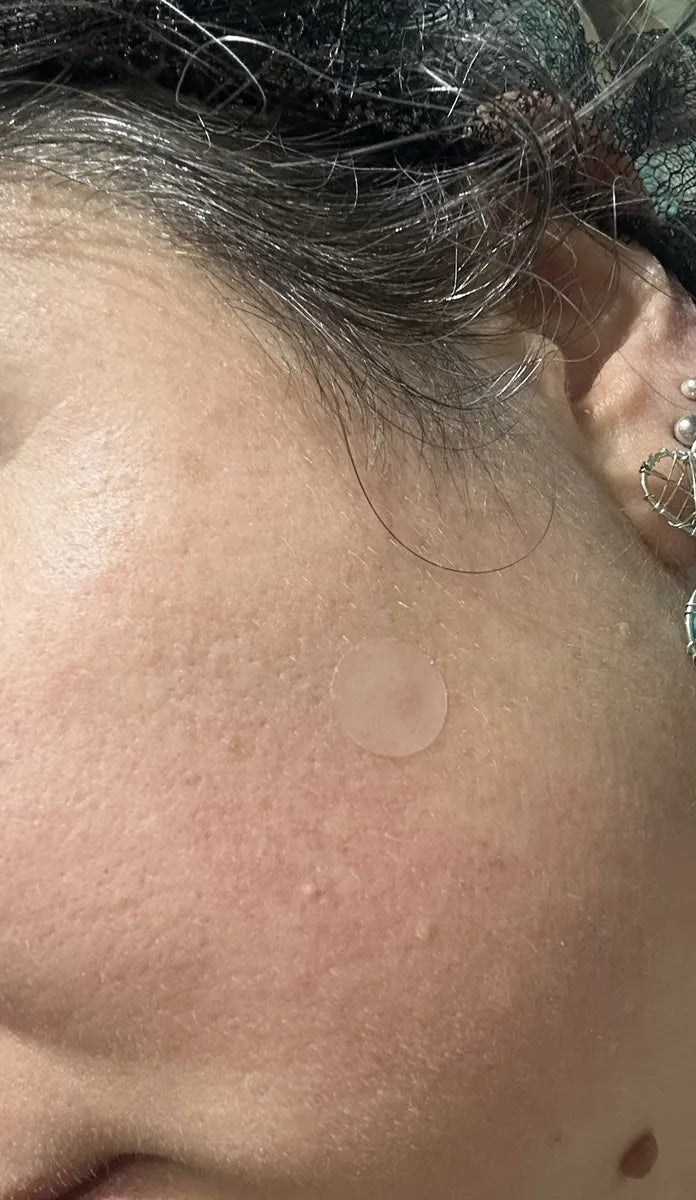 2️⃣ Coloca el parche directamente sobre la verruga, presiona suavemente para asegurar adhesión.
