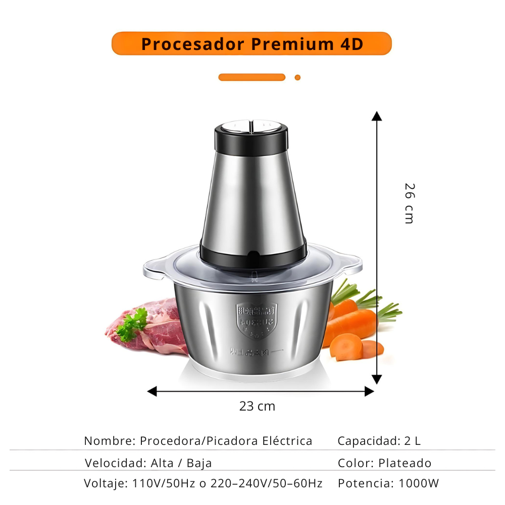 Procesador de Alimentos Gourmet - Premium 4D™ + Ebook "Secretos de la Cocina Gourmet"